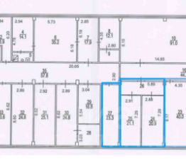Арендуемая площадь 26,1 кв.м с учетом коридорного коэффициента (12%) на 6 этаже.