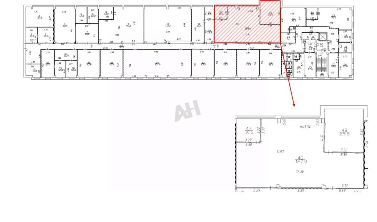 Офис с ремонтом : Стены: ГКЛ, стеклообои с в/э окраской. Потолок: подвесной типа "Армстронг", высота 2,7м -3,0 м. Инженерные системы: п/в вентиляция, центральное кондиционирование. Планировка на фото (открытая с выделенной переговорной комнатой и кабинетом директора).