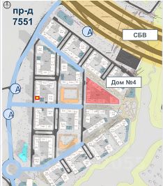 Рядом с будущими спортивными площадками, прогулочной зоной и и зоной парковки.