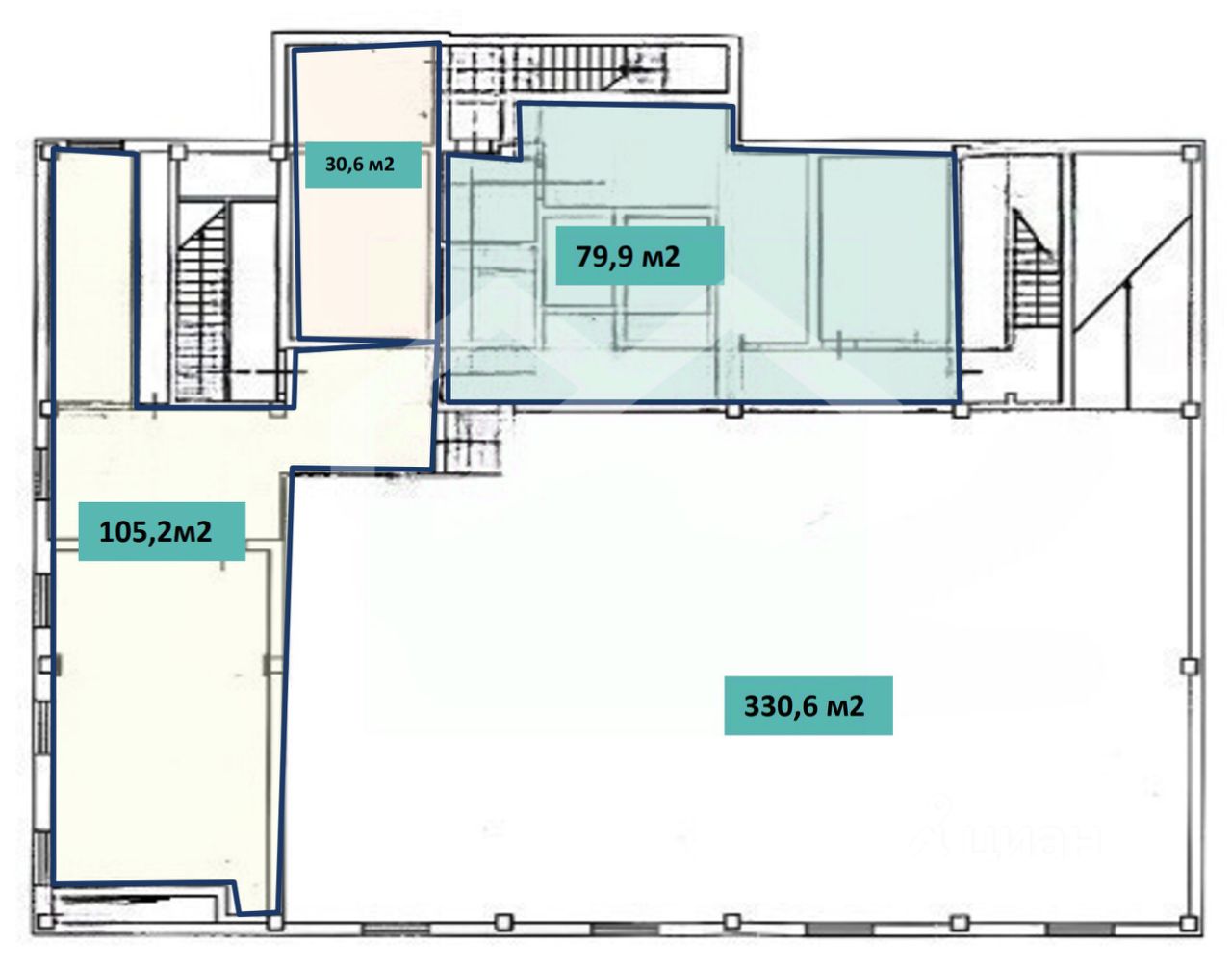 Площадь цокольного этаж: 599,5 кв. м.