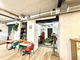 Густонаселенный район. Отдельный выход на улицу и возможность использовать наружную рекламу (вывеску), возможность использовать под кафе и салон красоты - есть много мокрых точек. Несколько комнат, можно сделать переоборудование комнат, ремонт в стиле лофт, 3 санузла, кладовка, второй выход для разгрузки товара. Электричество до 50 кВт, встроена приточная система вентиляции.
