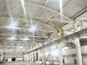 - Производственное помещение 2 размером 102,5х12м, высота до ферм 7-8м, крыша 8-9м, установлены две кран-балки г/п 5т.