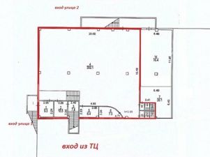 В помещение два отдельных входа с улицы, что даёт возможность круглосуточного режима работы, также есть вход из ТЦ, открытая планировка, высота потолка до перекрытия 3.77 м.