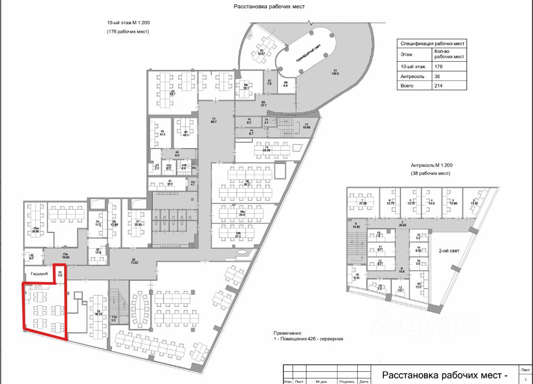 Изолированный офис с панорамным остеклением, потолком более 3 метров, с собственным гардеробом и мокрой точкой.