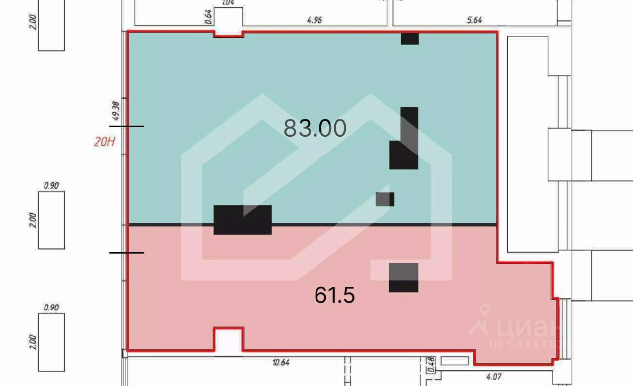 1143493. Предлагаем помещение свободного назначения в ЖК "Остров", площадью 61.5 кв. м, расположенное на первом этаже 22-этажного жилого дома.