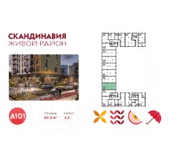 Сдается помещение площадью 84.30. на 1-м этаже ЖК "Скандинавия". Трафик 874 человек в день.