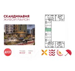 Сдается помещение площадью 84.30. на 1-м этаже ЖК "Скандинавия". Трафик 874 человек в день.