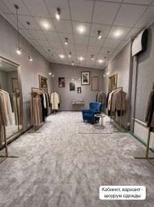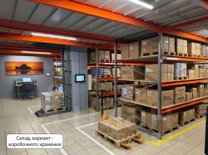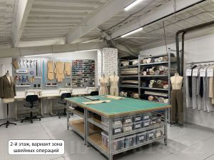 1 этаж — общая площадь 205 м.кв. Большой зал со стеллажным хранением, глубокими и широкими полками; кухня; туалет; отдельное просторное помещение (кабинет или шоурум)