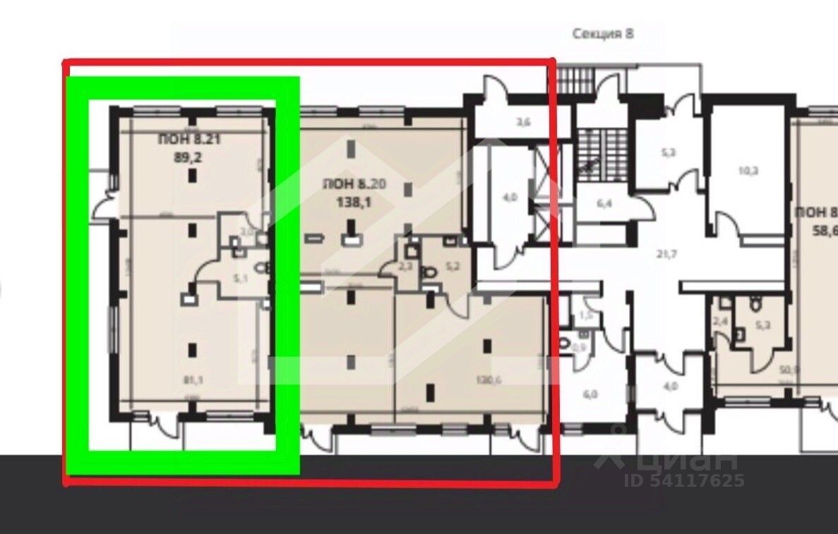 1096179. Предлагаем угловое помещение свободного назначения, площадью 89,2 кв. м, расположенное на первом этаже 15-этажного жилого дома в ЖК "1-й Ленинградский".