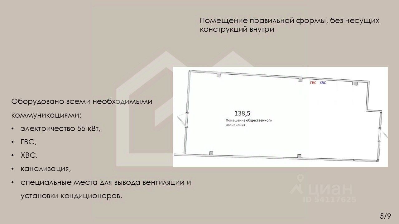 1105709. Предлагаем помещение свободного назначения, площадью 138,5 кв. м., расположенное на первом этаже жилого дома в ЖК премиум-класса HIGH LIFE. Стилобат.