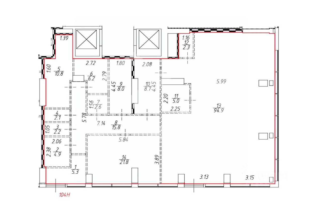 -есть возможность объединить с соседним блоком (общая площадь 190,6 кв. м.);