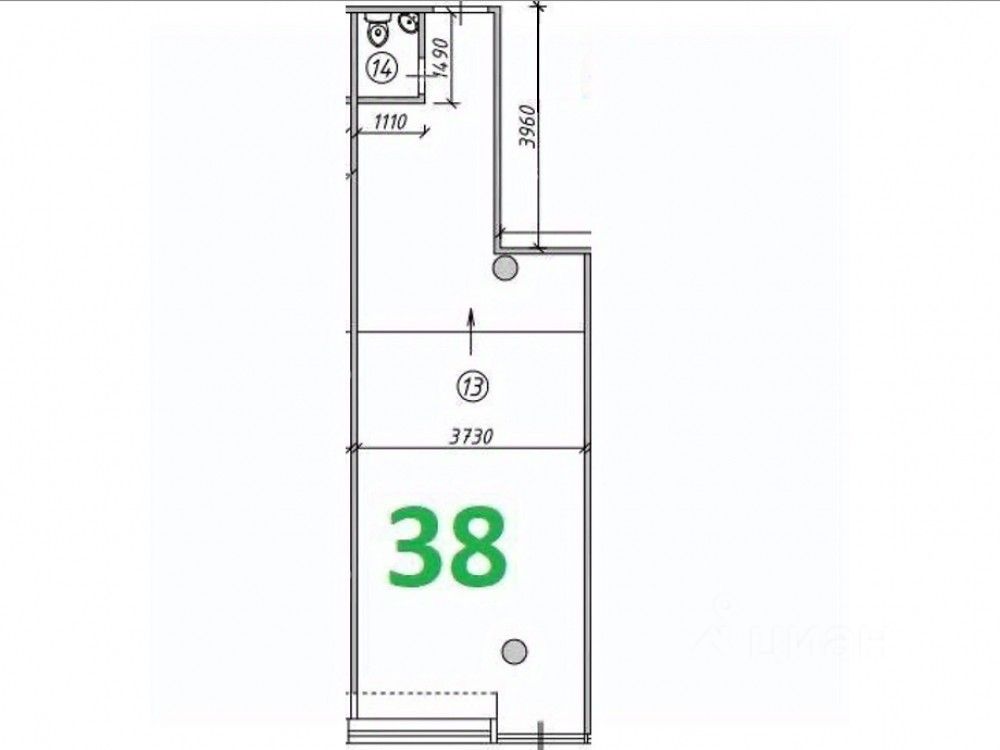 Площадь помещения 38 кв м.