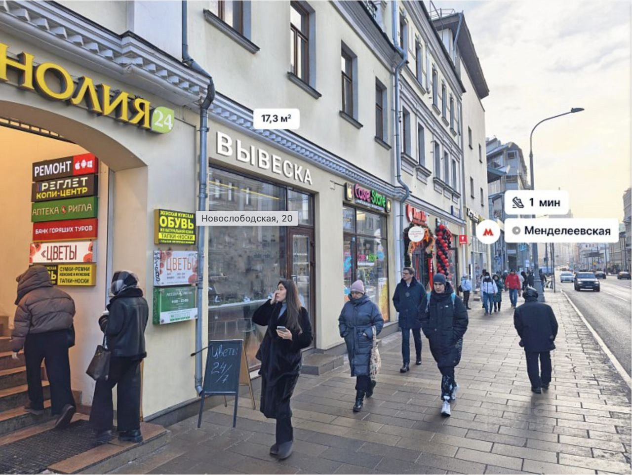 В шаговой доступности от станций метро Менделеевская и Новослободская.
