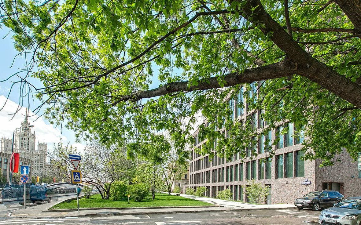 Комплекс расположен в центре города, между Бульварным и Садовым кольцами 1-й линии Серебрянической набережной.