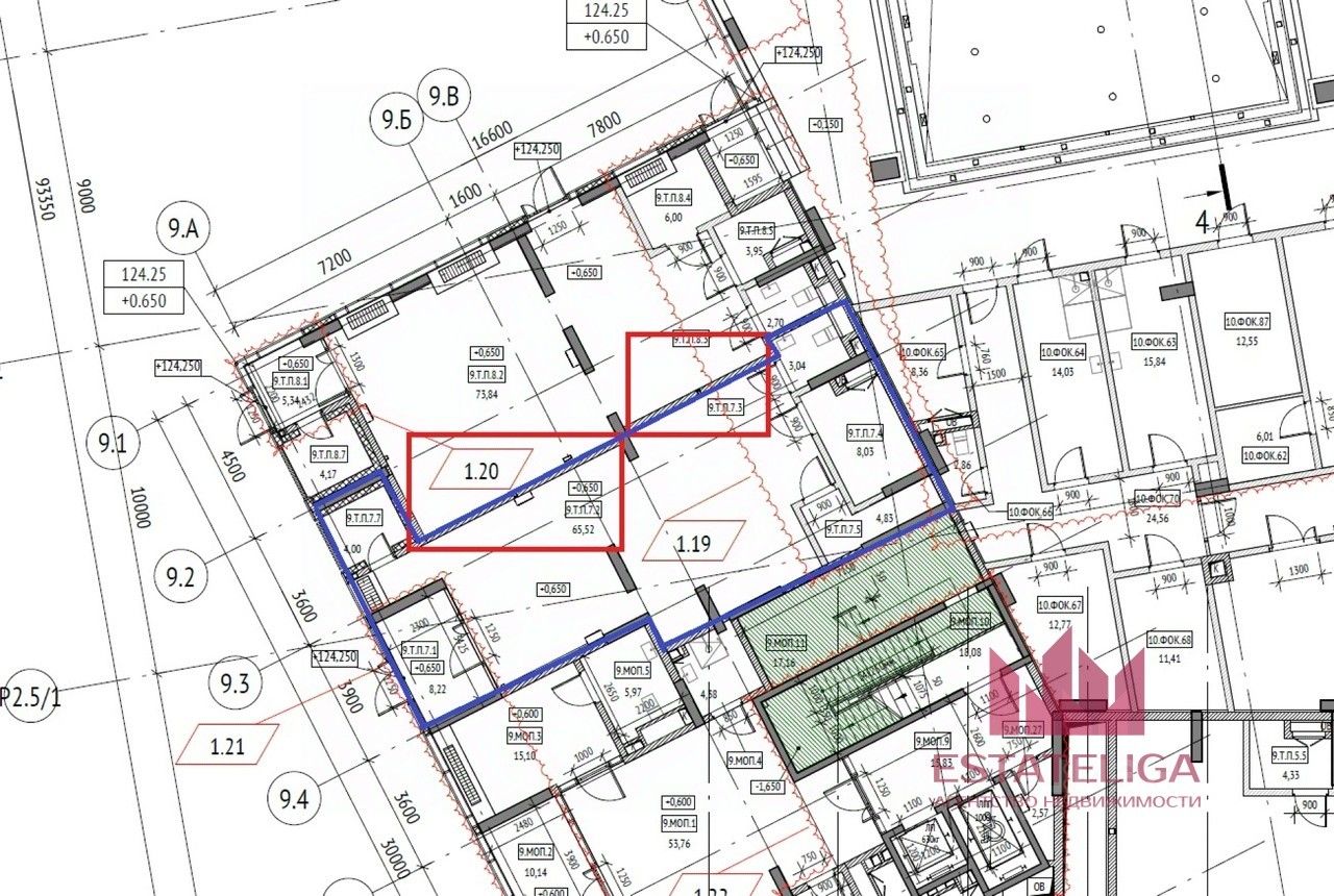Высота потолка 5,2 м, витринные окна по фасаду. Электрическая мощность 0,3 Вт на м2.