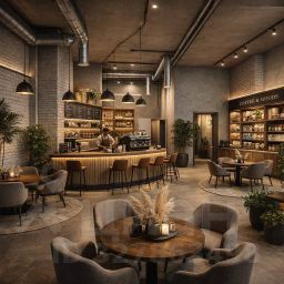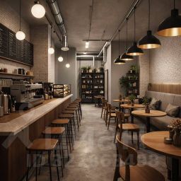 Помещение в стиле лофт, с высокими потолками, отлично подходит под разные форматы бизнеса.