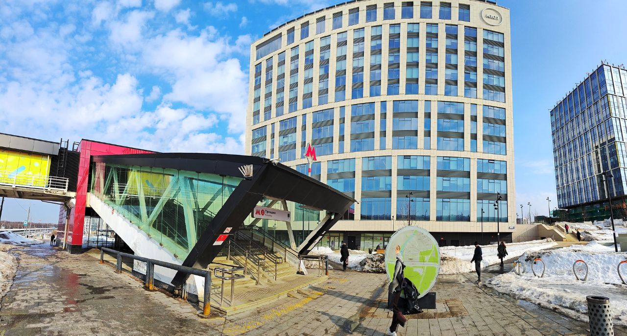 Прямой теплый переход из метро "Прокшино" прямо в лобби Бизнес центра;
