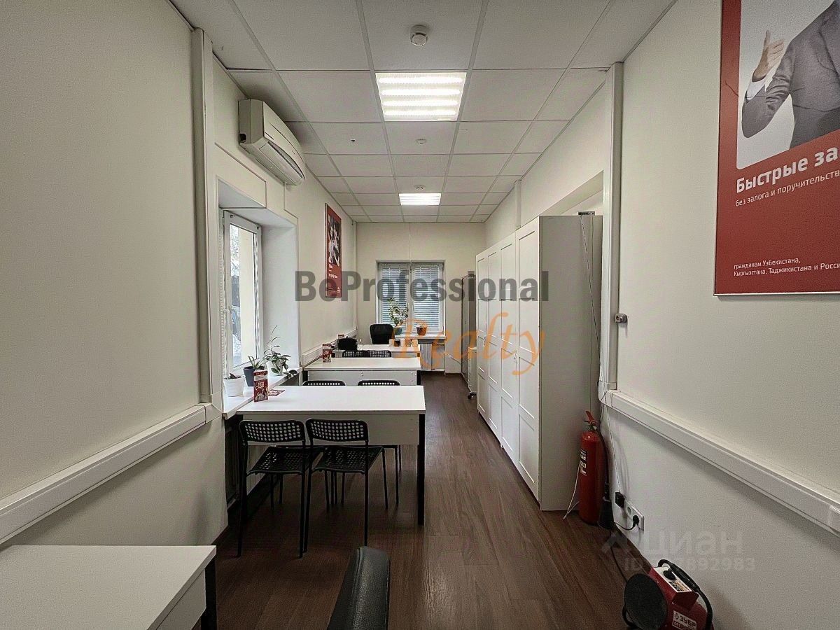 Помещение с отдельным входом со двора, площадью 200 кв.м. расположено на 1-м и цокольном этажах и состоит из зоны ресепшн, нескольких кабинетов различной площади с окнами и кондиционерами, подсобного помещения, комнаты для приема пищи и санузла. Выполнен стандартный офисный ремонт, есть возможность работы 24/7.