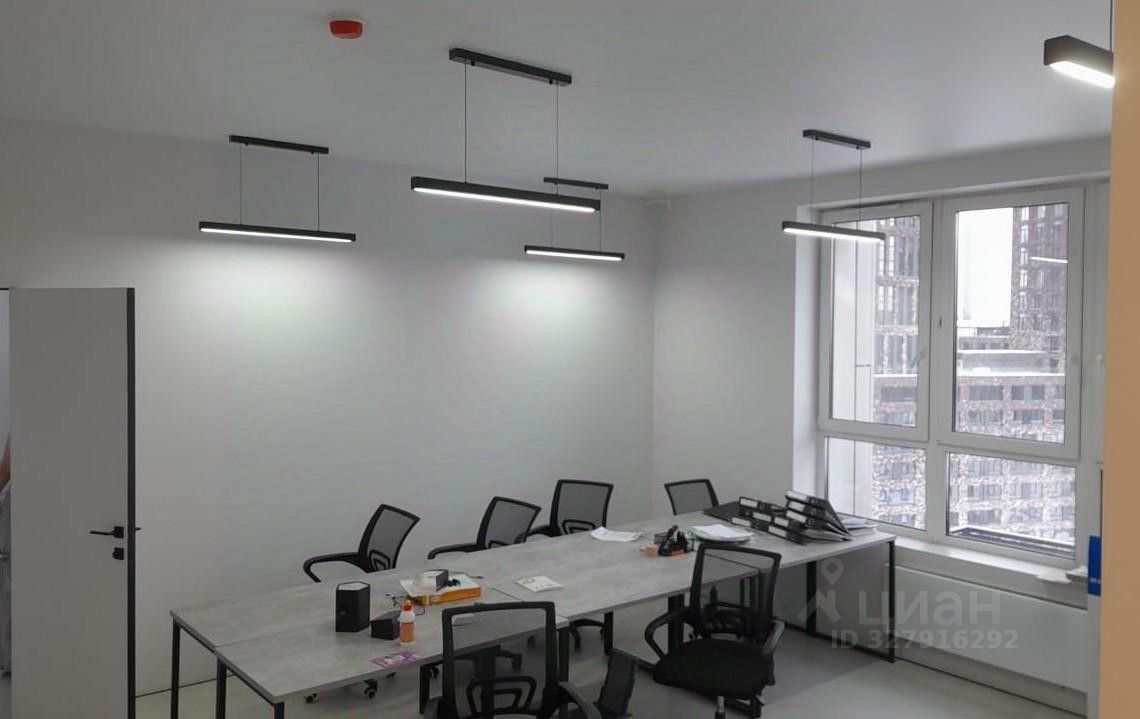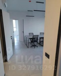 Планировка: опен спейс с большими окнами площадью 66,5 м2, свой санузел, оборудованная кухня и кабинет руководителя/ переговорная 11,5 м2. Высота потолков — 3,2 м. Офис со свежим ремонтом, современной отделкой в светлых тонах, оборудованым санузлом и кухней. В 24-этажной башне комплекса, сданного в эксплуатацию в 2019 году есть: 4 скоростных лифта, консьерж, охрана, круглосуточный доступ, теплый охраняемый подземный паркинг.