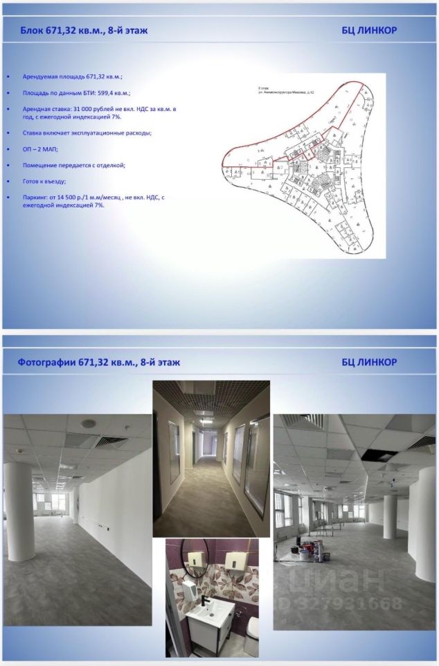 Ставка аренды 31000 за квм в год. Ставка включает Эксплуатационные расходы, НДС отдельно. Часы работы отдела аренды: 10:00 18:00.