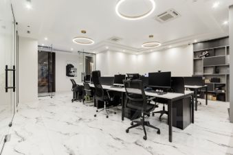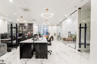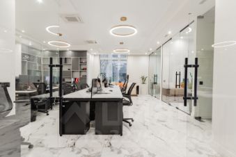 - Полностью оборудовано: современные рабочие столы, эргономичные кресла, шкафы и системы хранения частично включены в аренду.