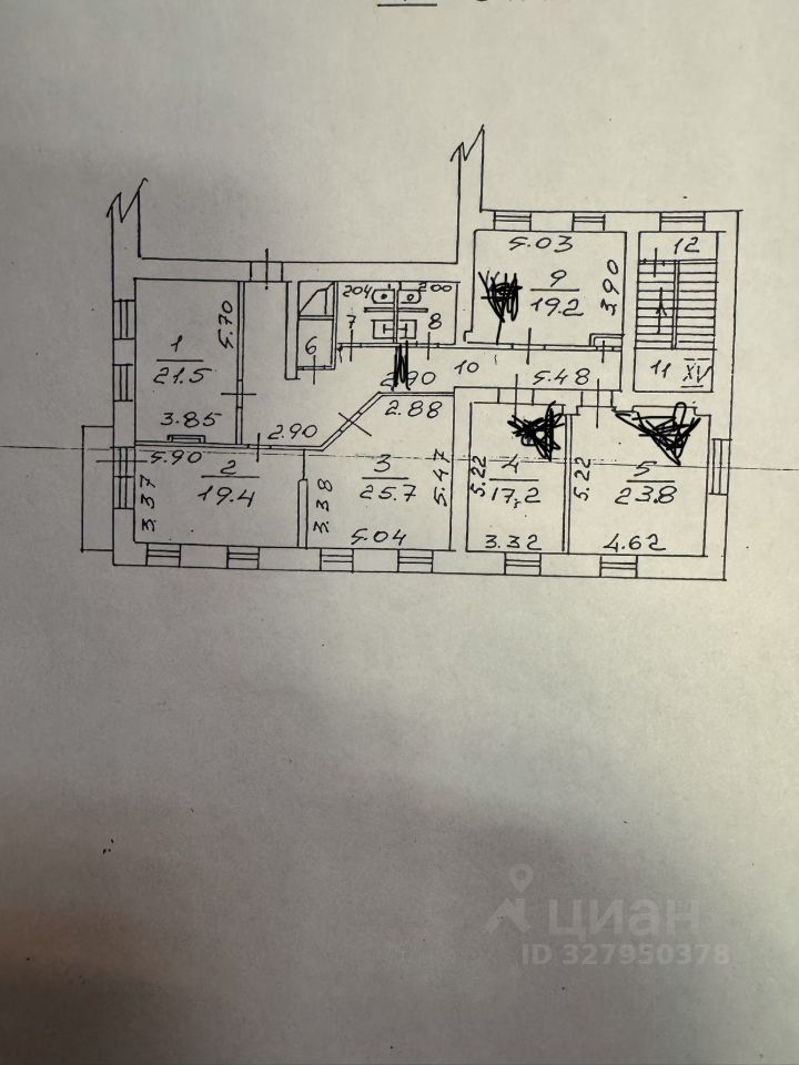 Перегородка, которая делит этаж на две части, отмечена на планировке карандашом.