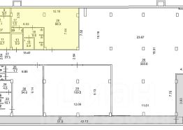Смотрите поэтажный план подвала. Все помещения, предлагаемые в аренду, выделены на плане жёлтым цветом.