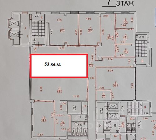 53 кв.м. на 7 этаже.