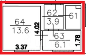 Кабинетная планировка: 2 кабинета, коридор, 1 с/у.