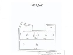 Общая площадь - 592 кв.м. Подвал - 161.3 кв.м, 1 этаж - 165.4 кв.м, антресоль 1 этажа - 85 кв.м, чердак - 180.3 кв.м.