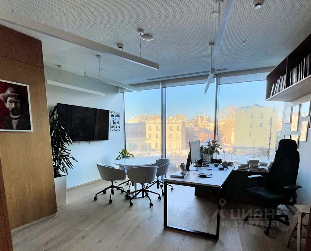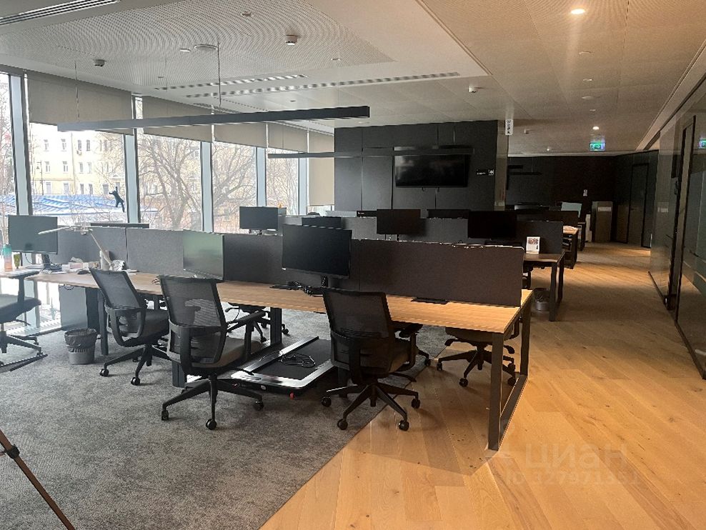 Комфортная посадка на 42 рабочих мест (вместимость до 60 рабочих мест), большая кухня, переговорные, кабинет руководителя, персональные сан. узлы. Очень светлый офис с панорамным остеклением.