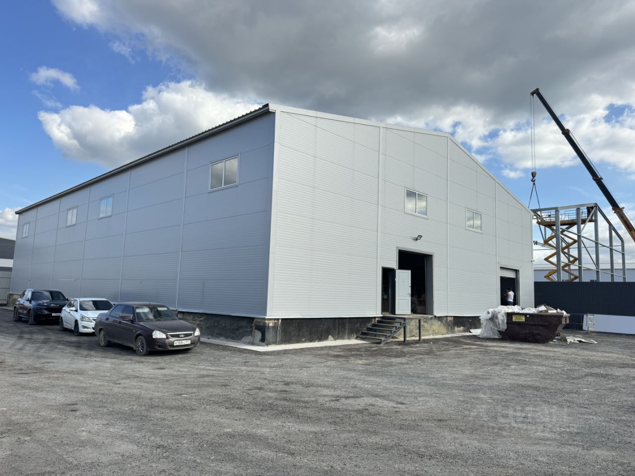 Двое ворот на пандусе 1.2 метра, под ваш запрос оборудовать офис нужной площади и установить дополнительные ворота. Рабочая высота потолка 7 метров.