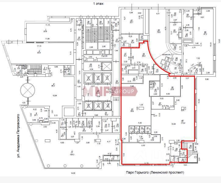 Лот: 38682. Помещение свободного назначения формата Street Retail под ресторан на первом этаже в Бизнес-центре Central Park Tower. Находится по адресу: Ленинский проспект, д.15А, на первой линии домов, в семи минутах пешком от метро Шаболовская.