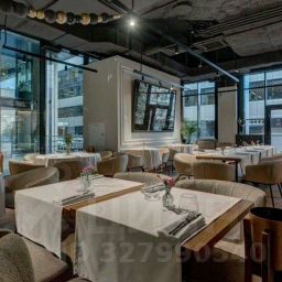 ==ЛОТ 224474 == ОТ СОБСТВЕННИКА, БЕЗ КОМИССИИ. Помещение с отдельным входом на 1 этаже Бизнес-центра "Белые Сады". В 3-х минутах от метро Белорусская. Ранее в помещении располагалось кафе Naomi. Выполнен ремонт, установлена приточно-вытяжная вентиляция и система кондиционирования. Панорамное остекление, высокие потолки. Технические условия подходят для размещения предприятия общественного питания. Возможна организация летней веранды. Высокий пешеходный и автомобильный трафик. Окружение — деловая и жилая застройка. Подойдет под ресторан, кафе, кофейню, бар или другой формат общепита.