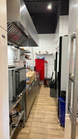 3. Производственная кухня (~12 м²): конвектомат, плиты, фритюрницы, тепловое и холодильное оборудование. Полный цикл горячего производства.