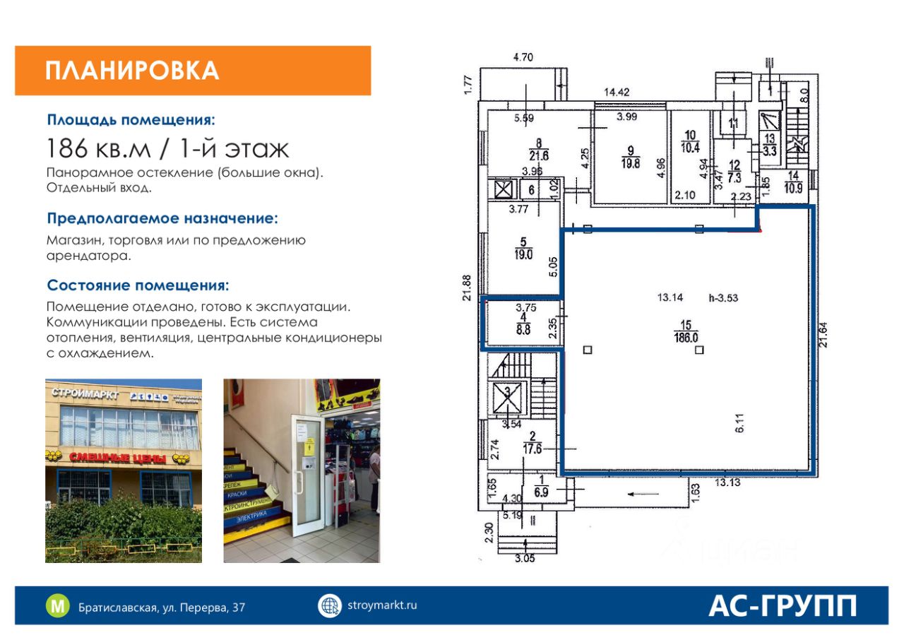 Сдается торговая площадь 180 м2, рядом с метро Братиславская, НДС включен, коммунальные отдельно