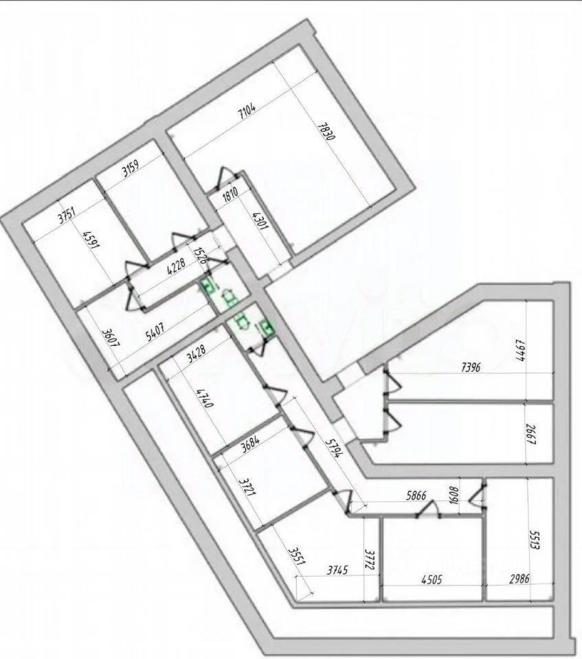 12 отдельных комнат, 3 санузла, есть водоснабжение в каждой комнате.