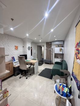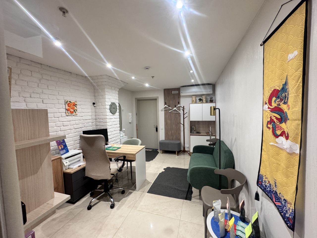 В помещении сделано свежий дизайнерский ремонт, напольное покрытие из широкоформатной плитки, зонирование на два кабинета. Имеется приточная вентиляция и кондиционирование, плюс бесплатный интернет. На этаж поднимается два лифта, при входе в здание есть пост охраны.