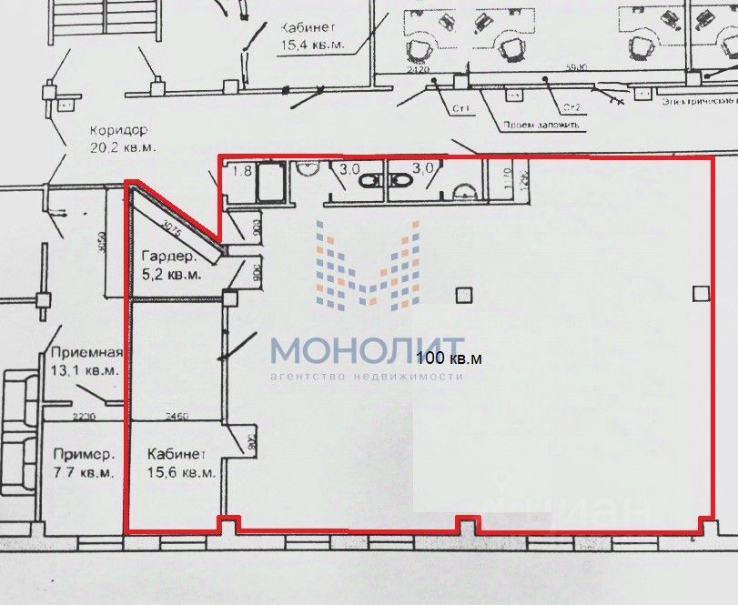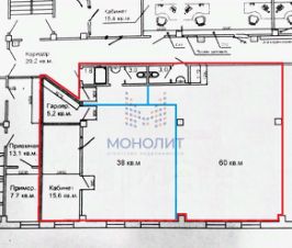 Опен спейс 38м2, два кабинета (18м2 и 7м2) и санузел.