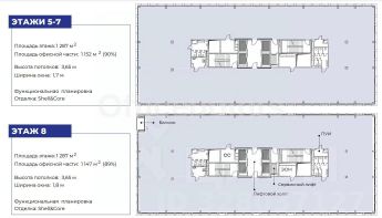 - Офисы формата open space с центральным ядром, отделка Shell&Core.