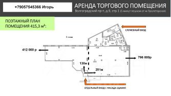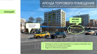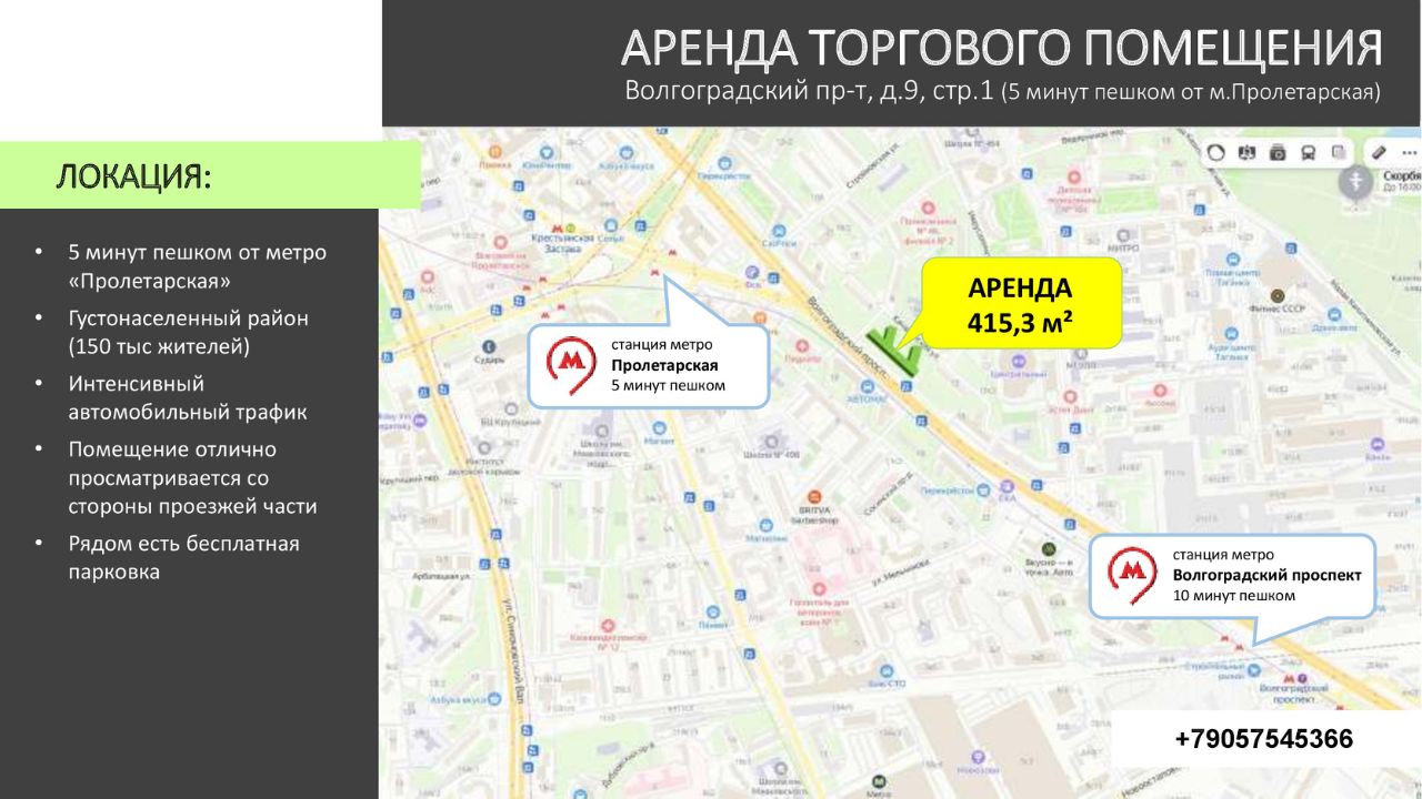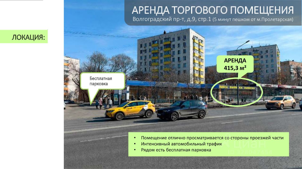 Предлагается в аренду ПСН_415,3 м² в составе ТЦ по адресу: Волгоградский проспект, 9с1.