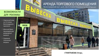Сверхвысокий рекламный потенциал: Огромные витрины и место для размещения вывески на фасаде, отлично просматриваемое с Волгоградского проспекта.