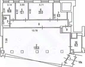 Торговое помещение 220,5м2 на 1 этаже 10 этажного дома. Отдельный вход через тамбур. 1-я линия домов, витринные окна. Электрическая мощность 60кВт. Возможно деление площади.