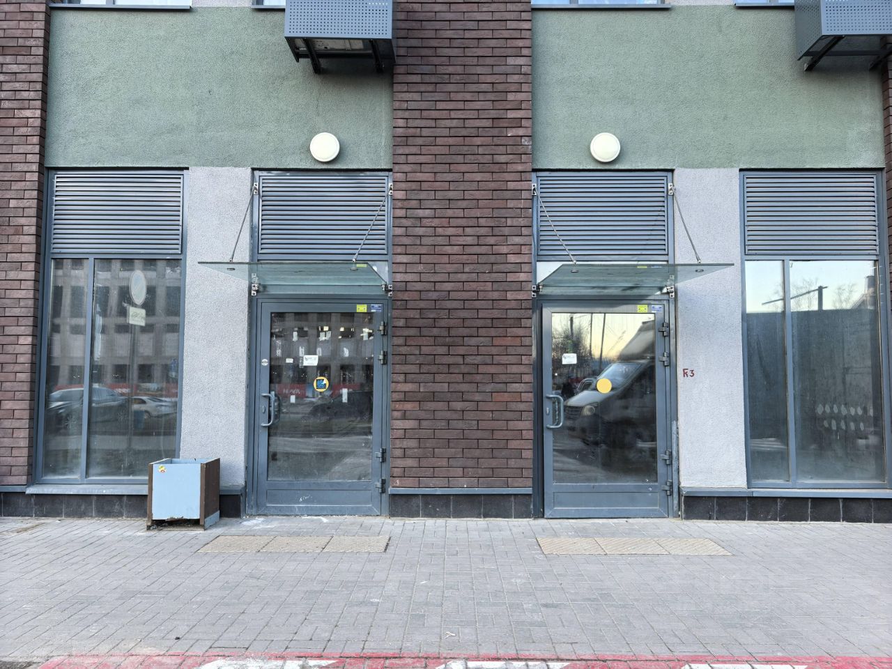 Удобная архитектура: Два отдельных входа + витринное остекление. Отличная возможность разделить поток посетителей и персонала или организовать два направления бизнеса.