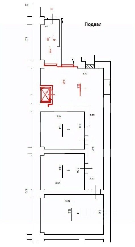 1078092. Предлагаем помещение свободного назначения, площадью 367 кв. м, расположенное в подвале и на первом этаже 5-этажного административного здания.