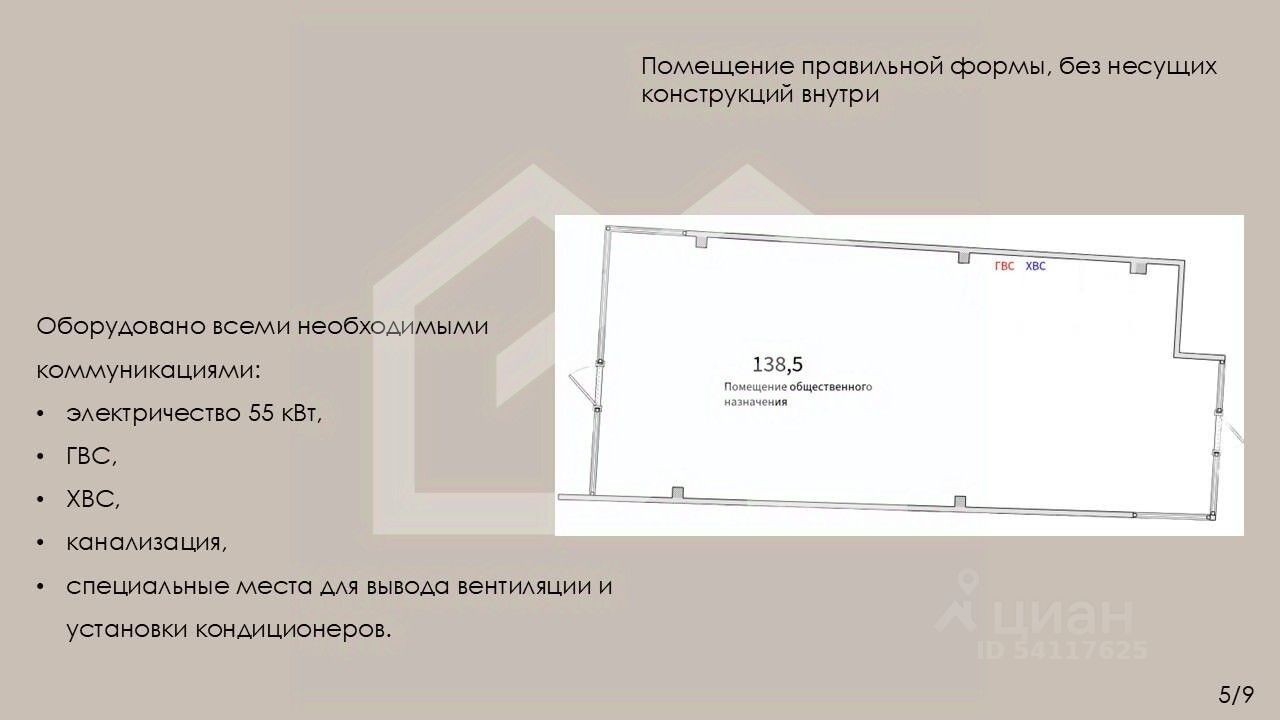 1105709. Предлагаем помещение свободного назначения, площадью 138,5 кв. м., расположенное на первом этаже жилого дома в ЖК премиум-класса HIGH LIFE. Стилобат.