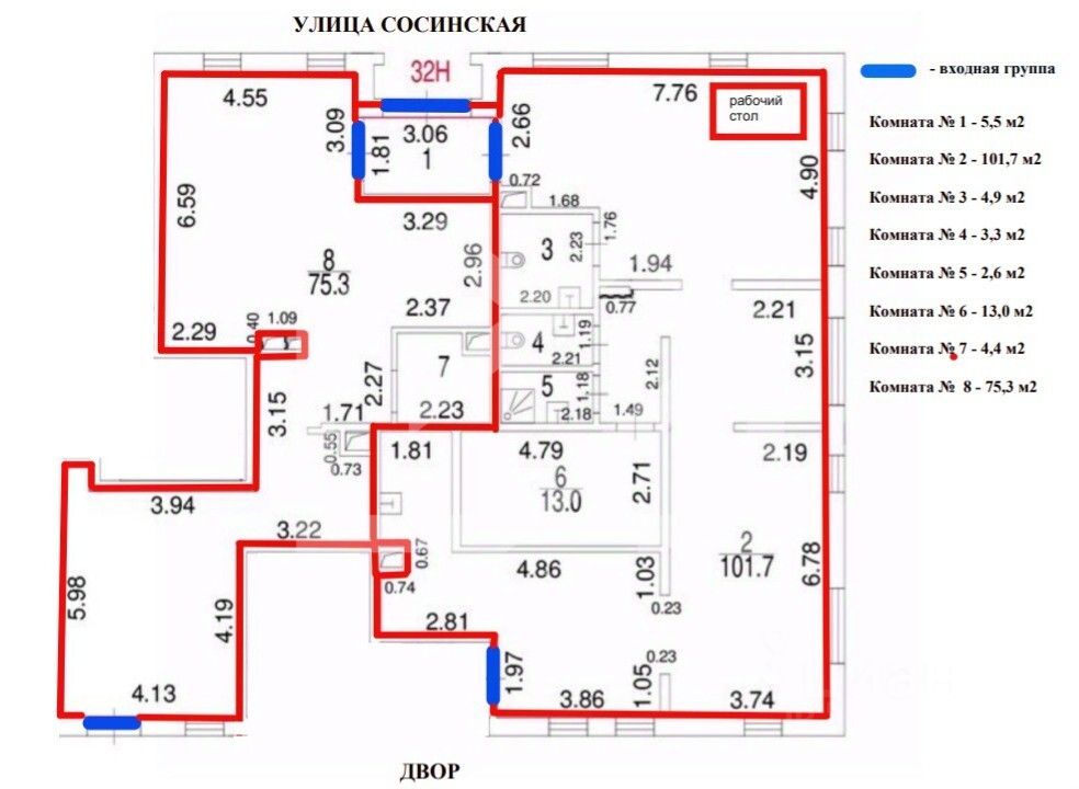 -3 отдельные входные группы с улицы и со двора;