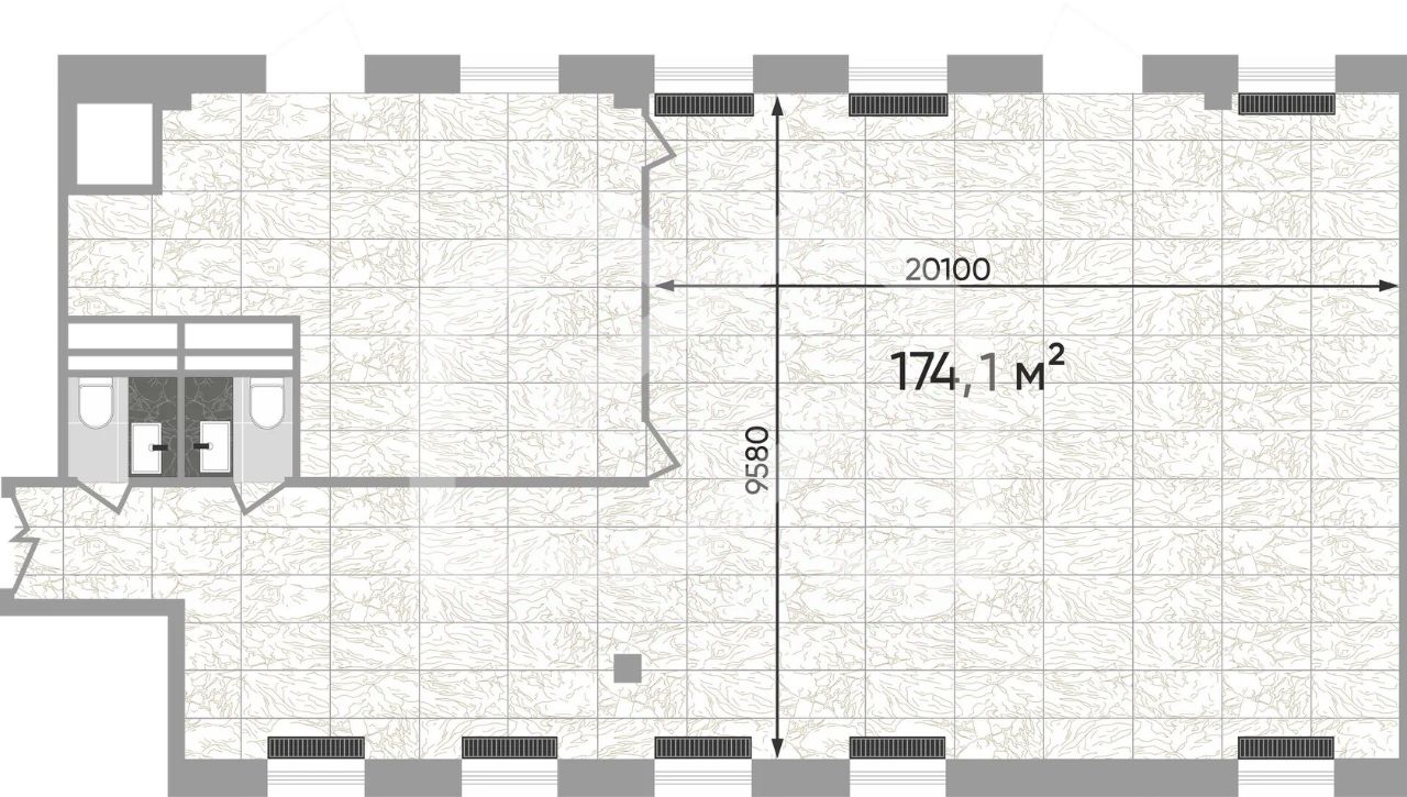 1110138. Предлагаем помещение свободного назначения, площадью 174.1 кв. м, расположенное на первом этаже 3-этажного административного здания в составе ЖК "Зорге 9".