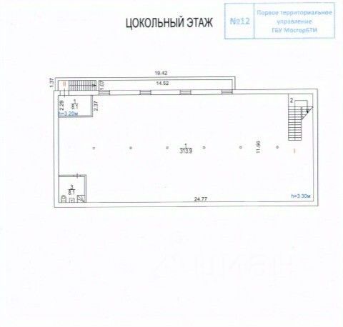 1117007. Предлагаем помещение свободного назначения, площадью 313.9 кв. м, расположенное на цокольном этаже 2-этажного административного здания.