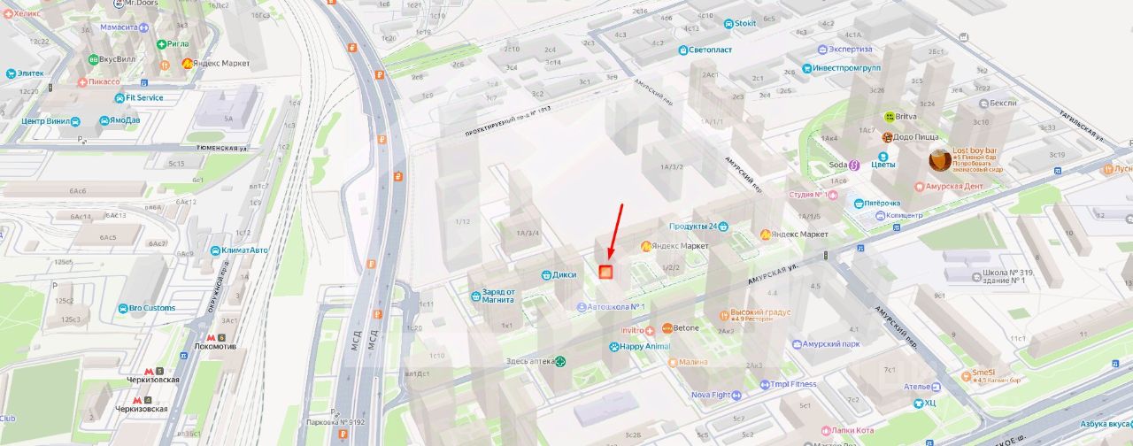 -8 минут пешком от станций метро Черкизовская и МЦК Локомотив;
